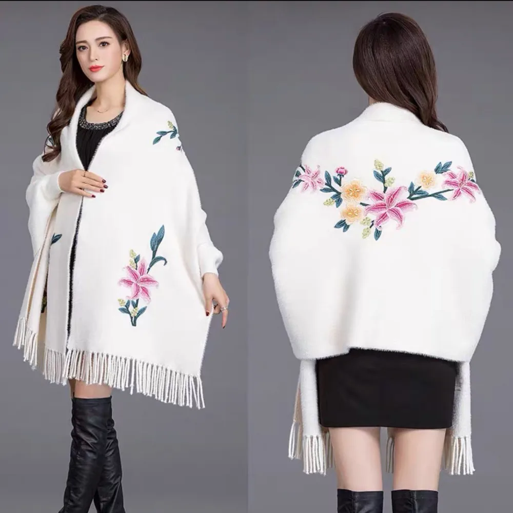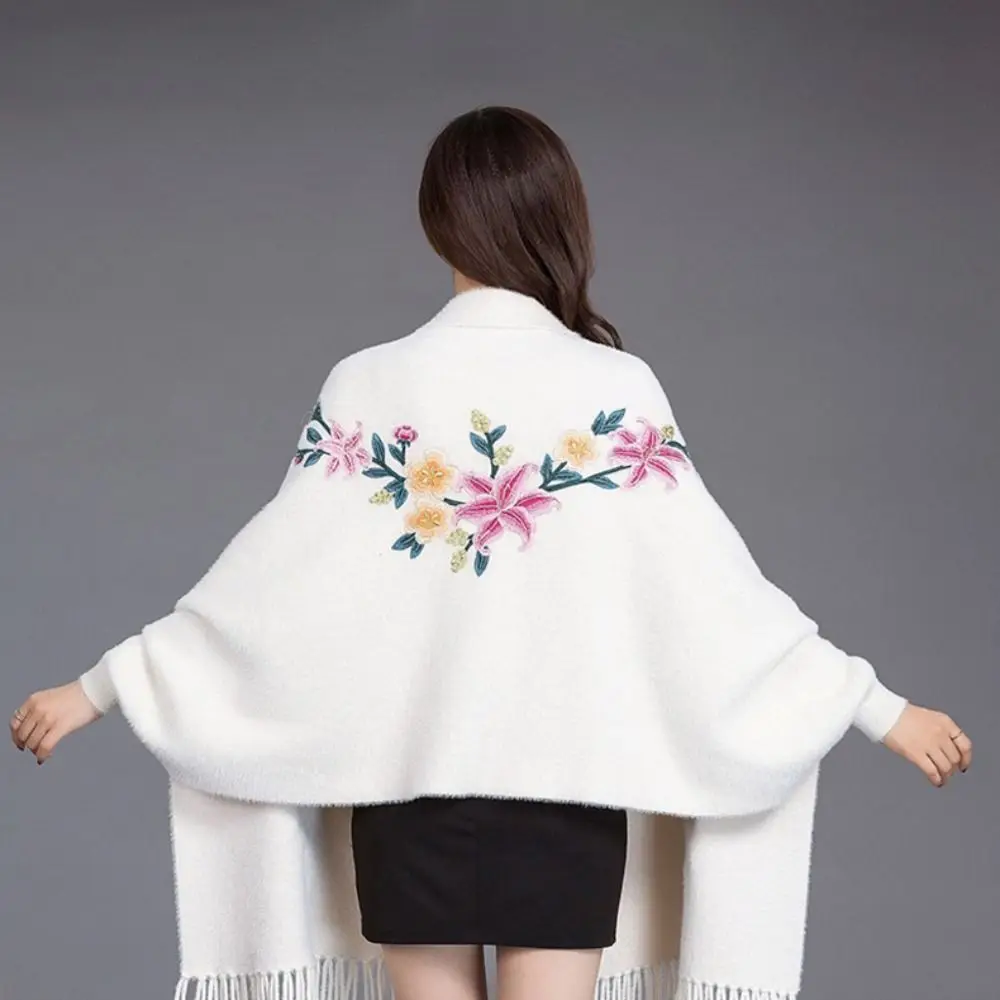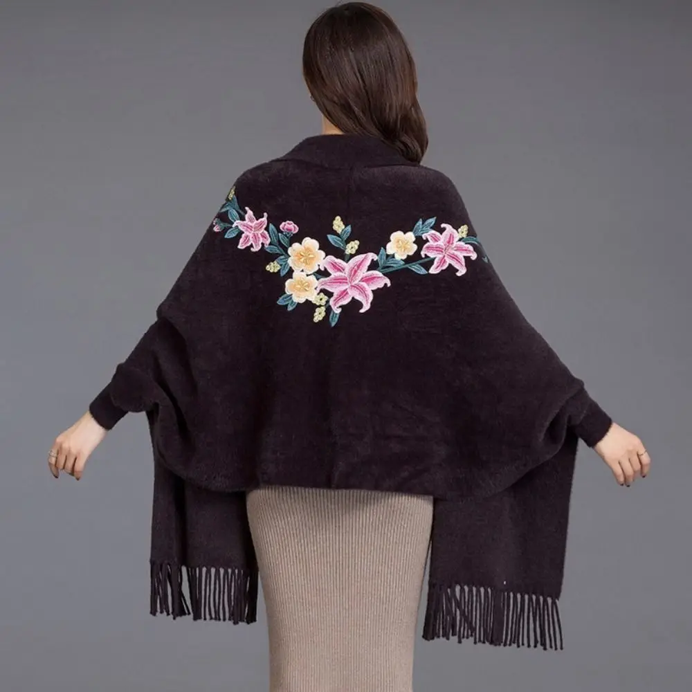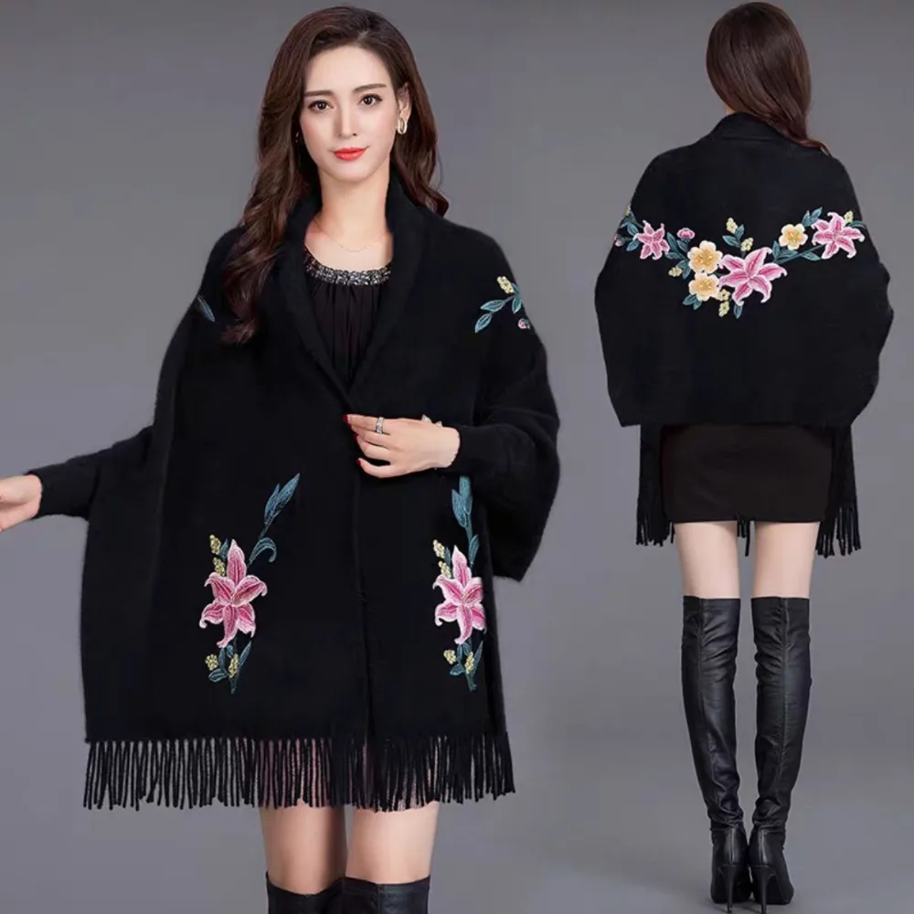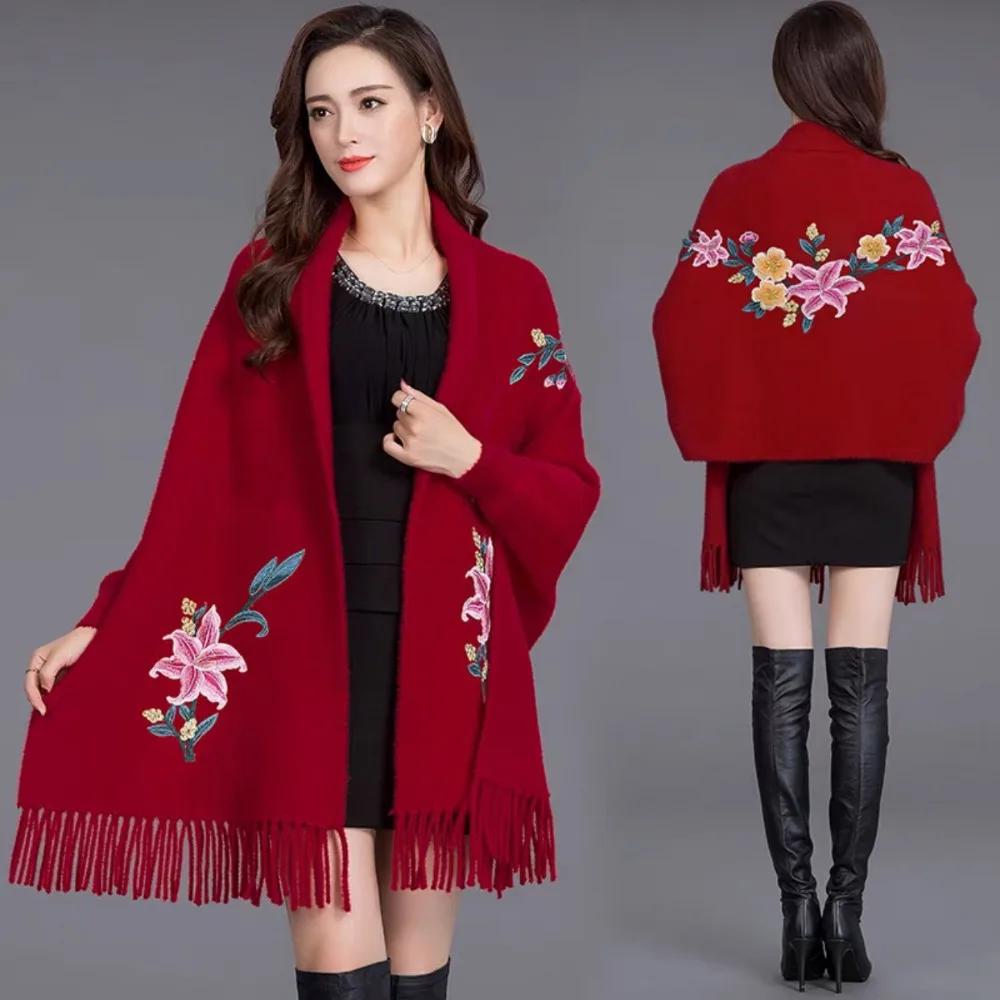 Écharpe Brodée En Imitation Cachemire Châle Épais Et Luxueux À Longues Franges Élégant Cape Cardigan : un must-have