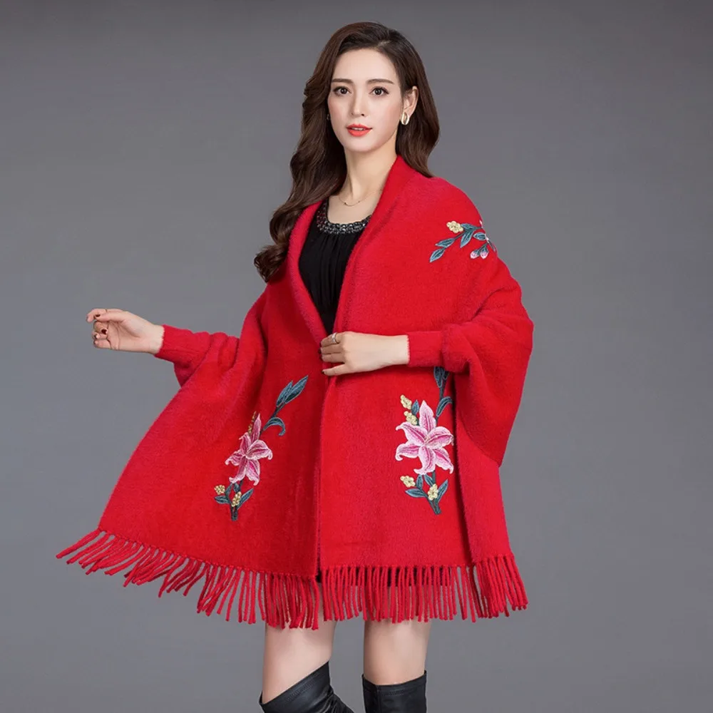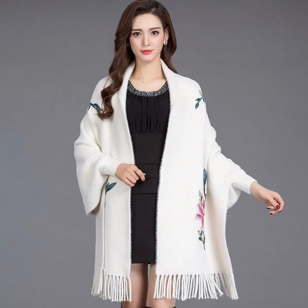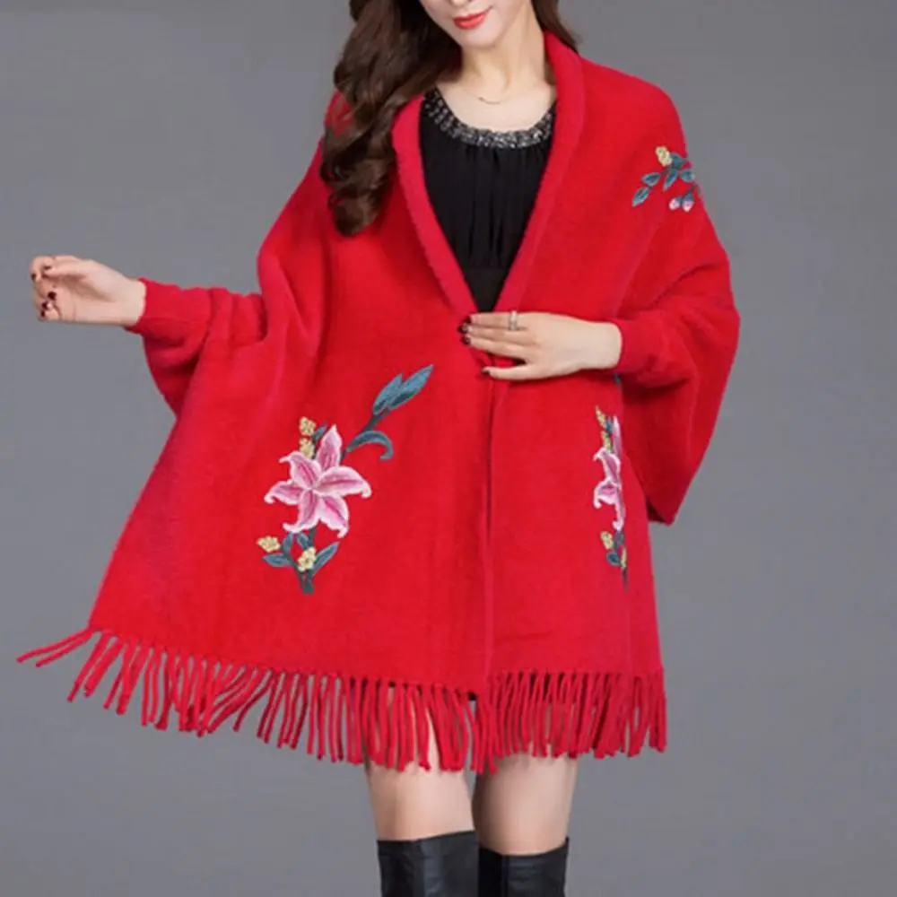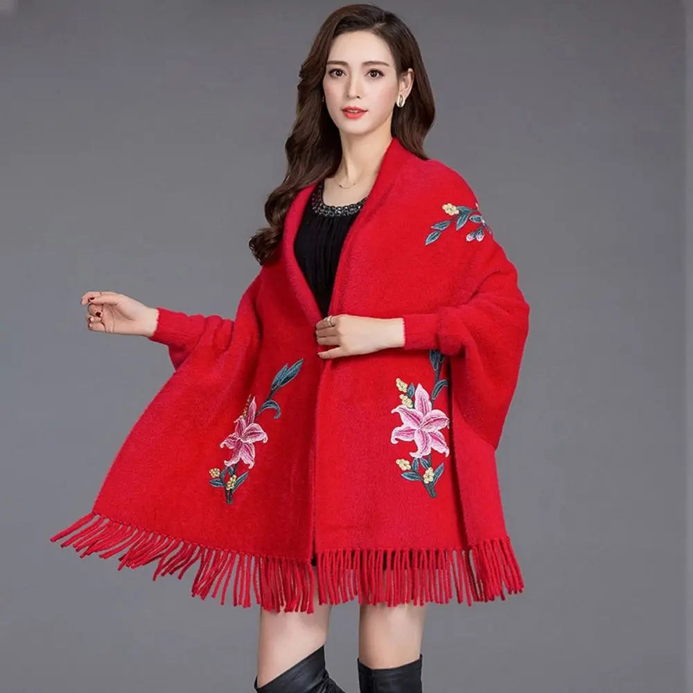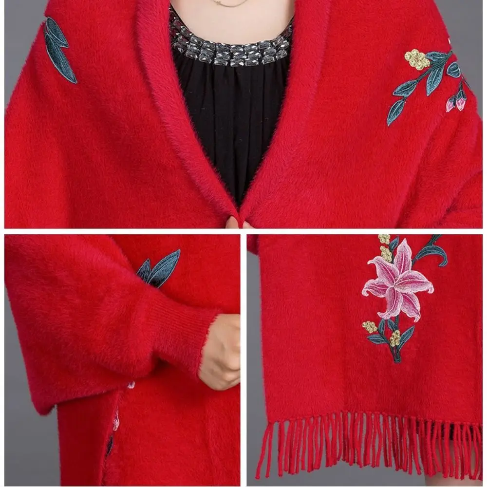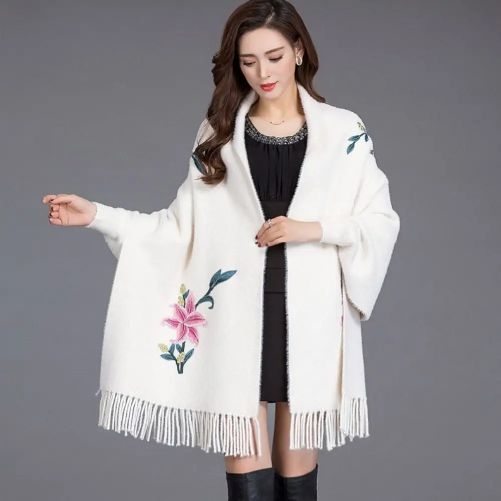 Écharpe Brodée En Imitation Cachemire Châle Épais Et Luxueux À Longues Franges Élégant Cape Cardigan : un must-have