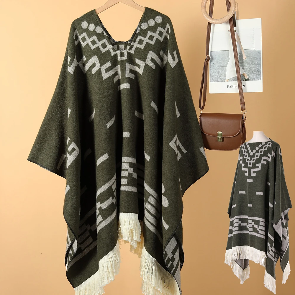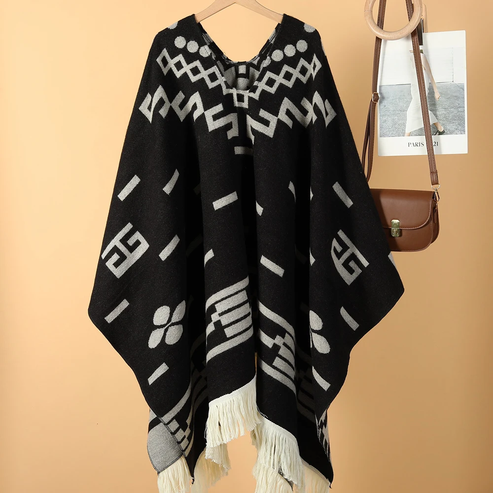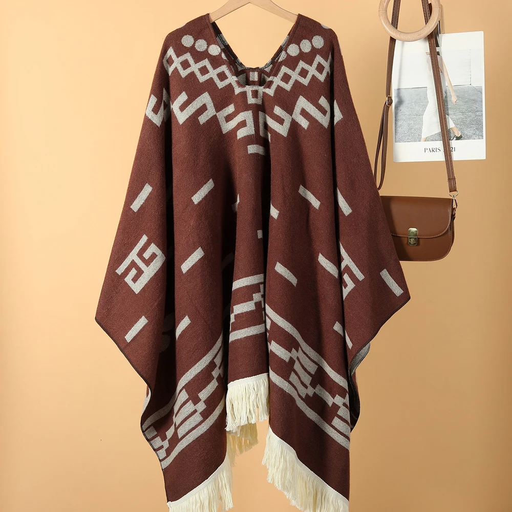 Echarpe De Luxe Femme Cape Pull Style Cowboy Western Poncho Doux En Acrylique Et Cachemire Long Manteau Cape De Voyage : à découvrir absolument