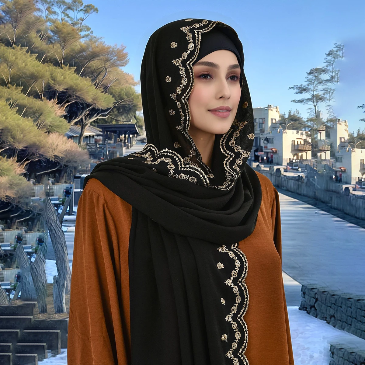 Laissez-vous séduire par Echarpe De Luxe Femme Châle Musulman Style Hijab En Mousseline De Soie À Bord Scintillant