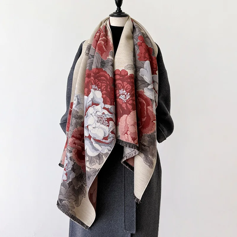 Optez pour Écharpe De Luxe Femme En Cachemire Florale Épais Et Chaud Design Châle