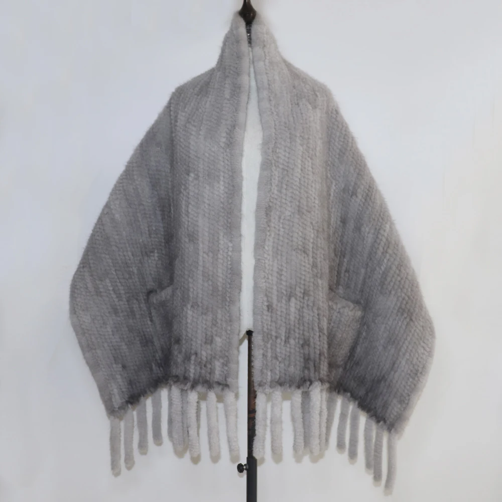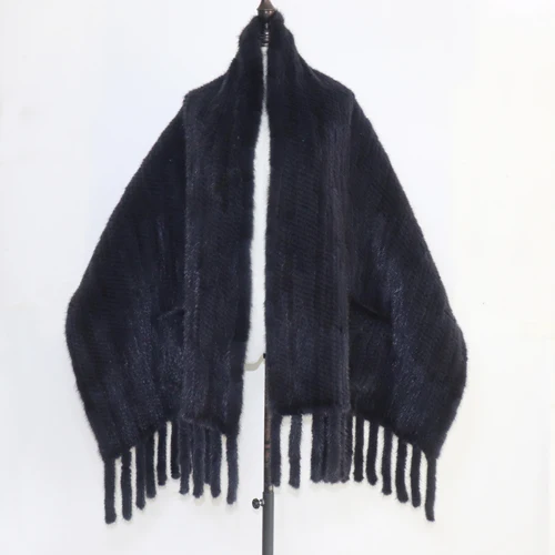 Le compagnon idéal : Écharpe De Luxe Femme En Longue En Fourrure De Vison Véritable Tricotée Châle En Fourrure De Vison Naturelle 100 Naturelle