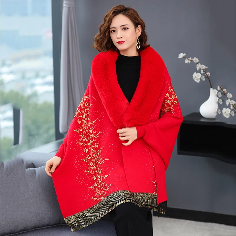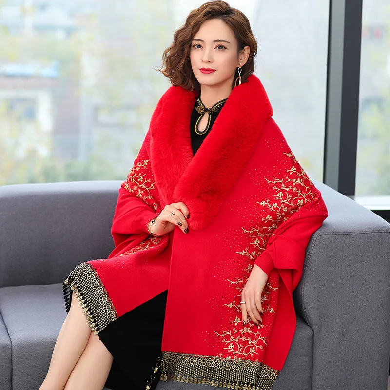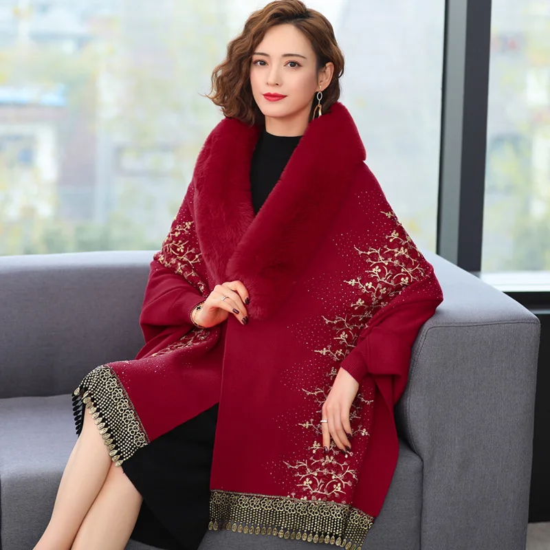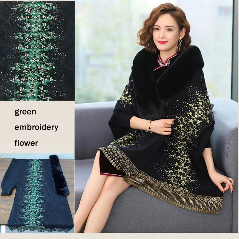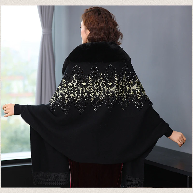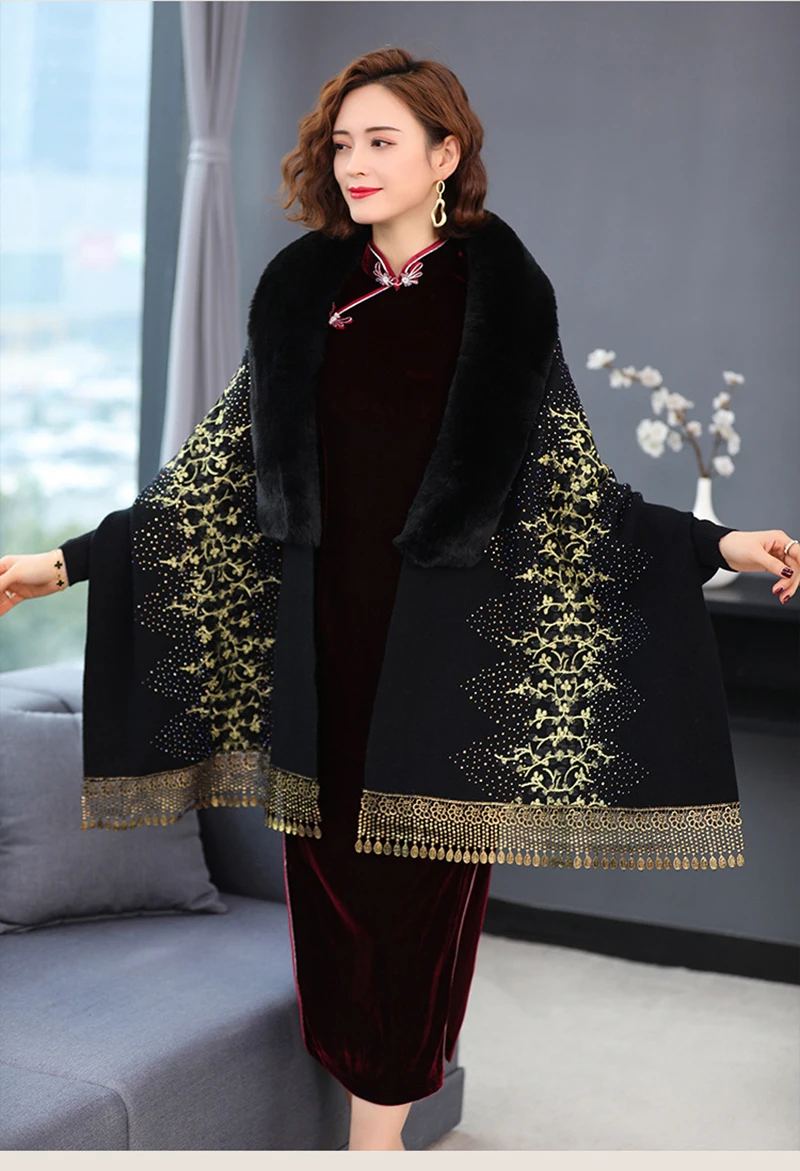 Echarpe De Luxe Femme Style Cardigan En Fausse Fourrure Brodée De Dentelle Perlée Délicate Pour Femme Manteau Épais Et Doux Châle À Manches Chauve-souris : à découvrir absolument