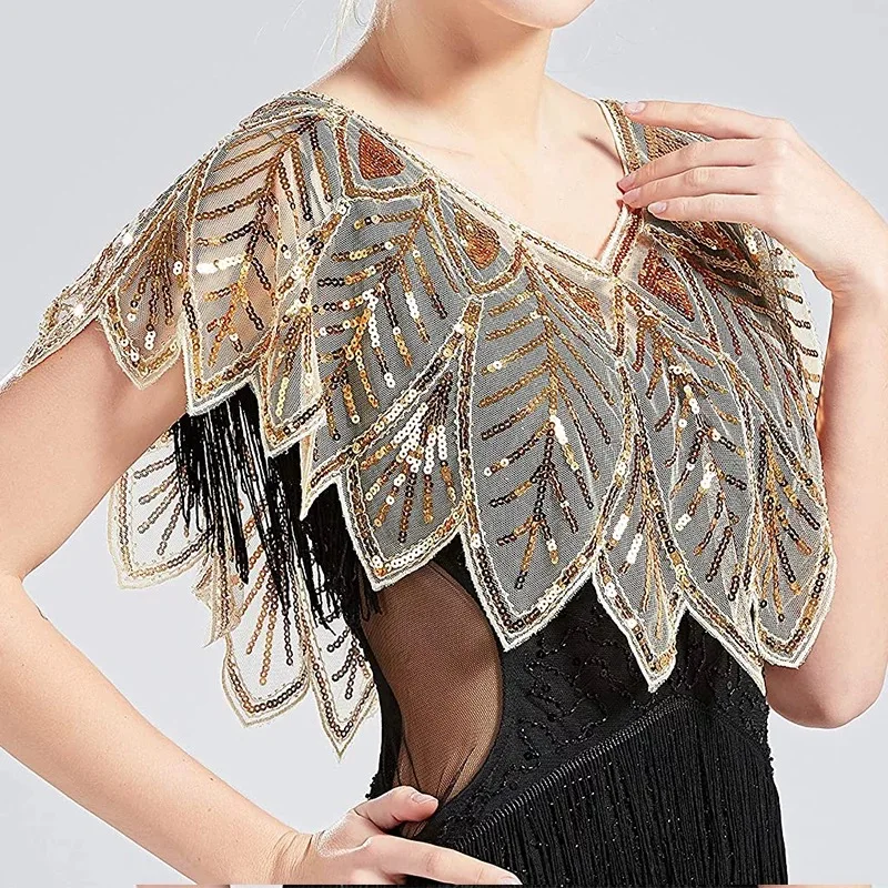 Nouveauté : Echarpe De Luxe Style Châle Courte Veste Cape Paillettes Étincelles Veste Haussement D’épaules Capa Et Perles Élégantes Châle Enveloppement Noir Dentelle Boléro