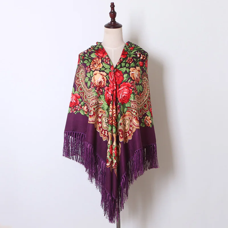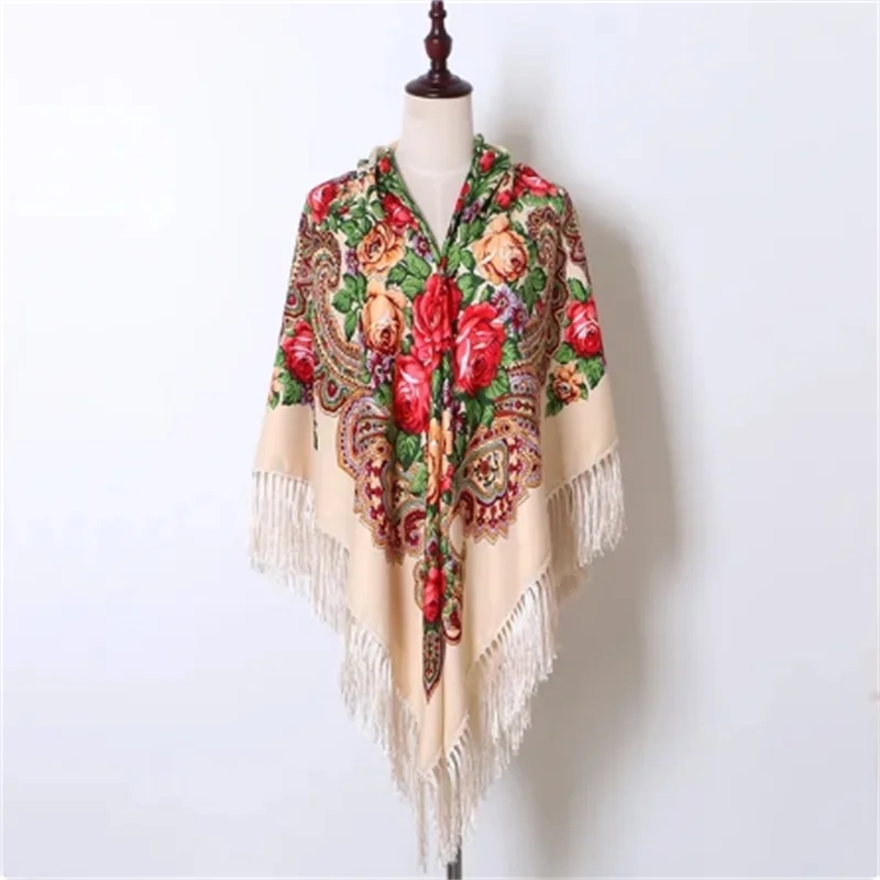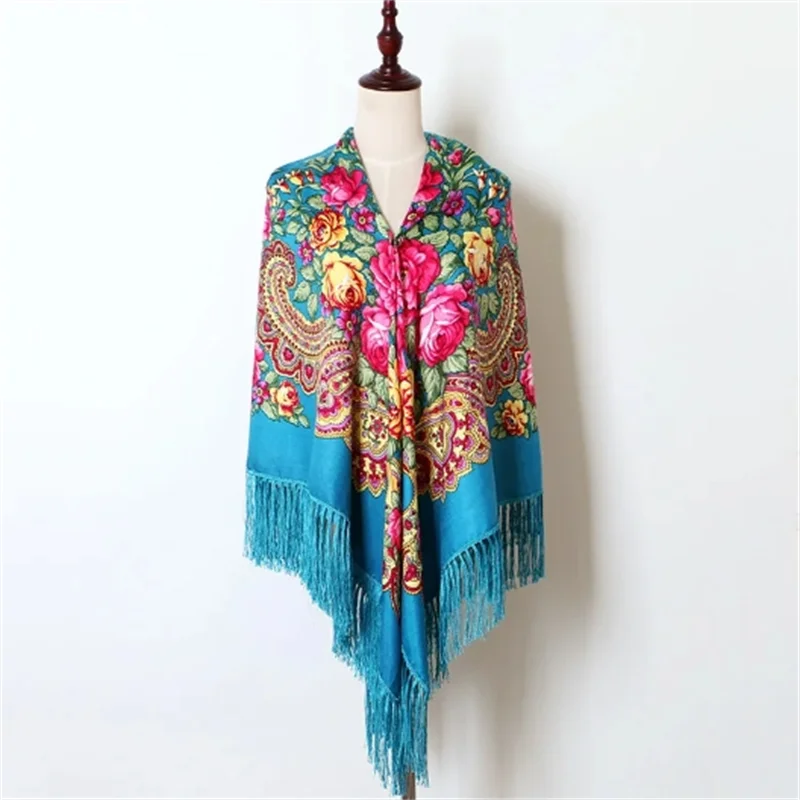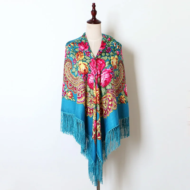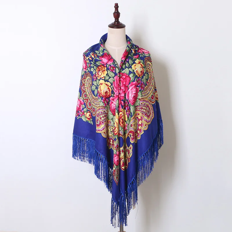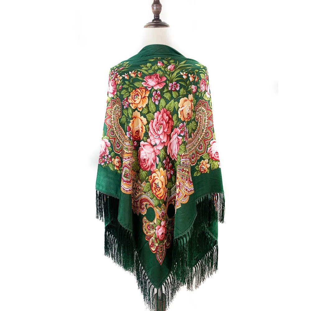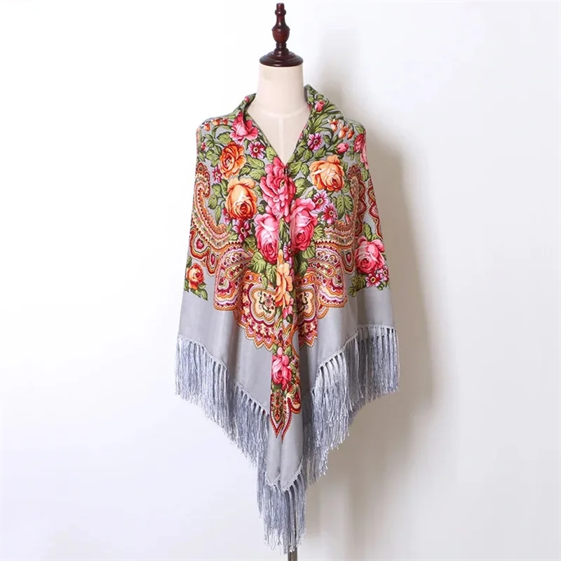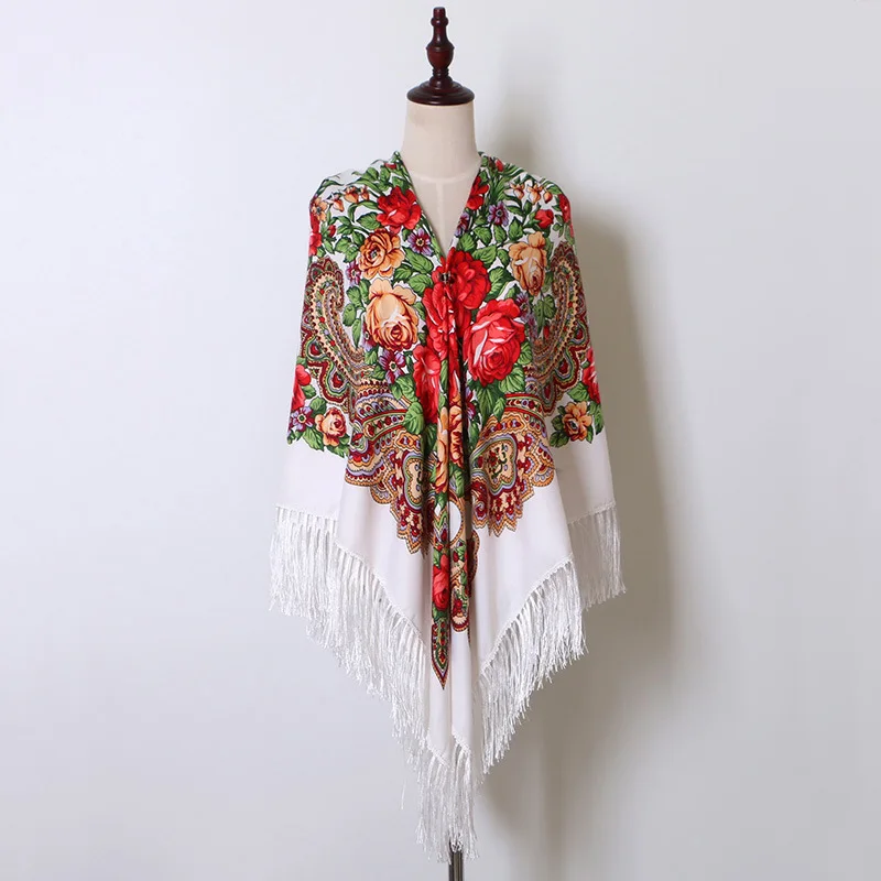 Echarpe Femme Style Foulard Babouchka Russe Imprimé Floral En Coton À Pompons Pour La Plage Les Voyages Les Ombrages Les Bandanas : pour toutes vos envies